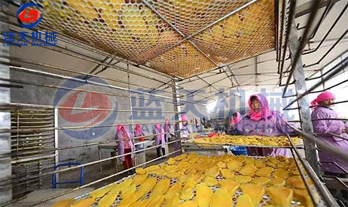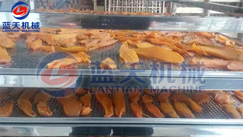 1、待紅薯片烘干機(jī)溫度升至大約30℃時(shí)將紅薯片放入烘房內(nèi)部。設(shè)定溫度為40℃。烘干時(shí)間為1-2小時(shí)。