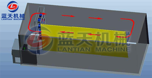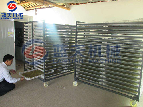 3.為了保證金銀花快速干燥和烘干質(zhì)量,烘房內(nèi)要做靜壓腔,讓出風更加均衡,回風設(shè)計在烘房頂部正中,讓熱風流動更加均勻順暢。