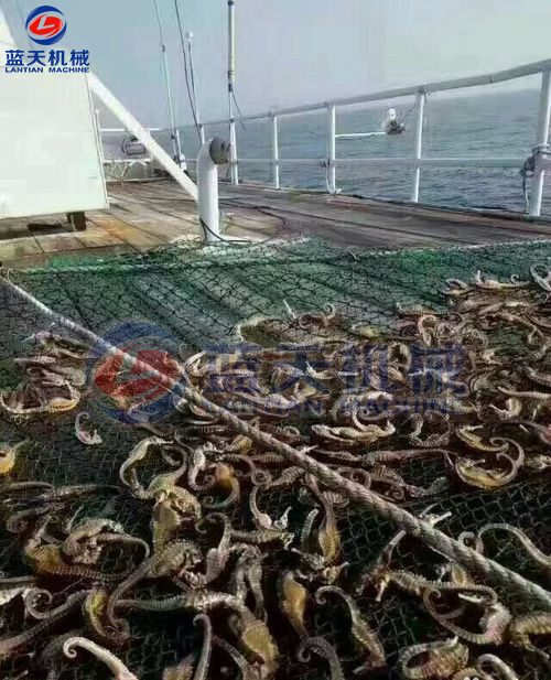 海馬在人工養(yǎng)殖條件下,4個月左右即可達到商品規(guī)格??稍?~9月分產(chǎn)量最高時采收,或者在越冬之前采收,也可以根據(jù)需要隨時采收。平時可以用網(wǎng)兜捕撈,需要量大時,可干水捕捉。采收到的鮮活海馬,如果為短途運輸,可以裝在木桶中送到目的地;如為遠途,可把海馬裝在氧氣袋中運輸,到目的地后,仍可保持新鮮狀態(tài)。