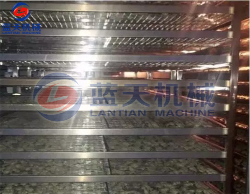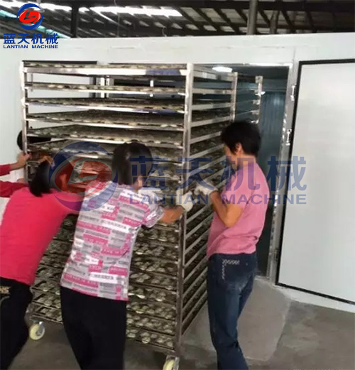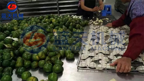 2、剝好的陳皮由車間工人集中運(yùn)至裝料區(qū),由裝料工人開(kāi)始裝入物料托盤,上物料架,馬上要準(zhǔn)備大批量烘干咯。