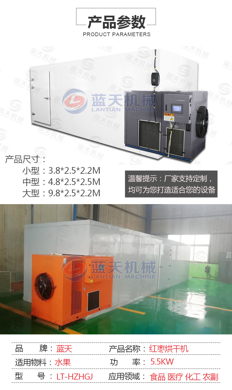 紅棗烘干機采用空氣能熱泵來烘干紅棗等農(nóng)產(chǎn)品很合適,機器綠色環(huán)保節(jié)能,使用電能要比電熱管烘干箱烘烤設(shè)備少30%-40%。