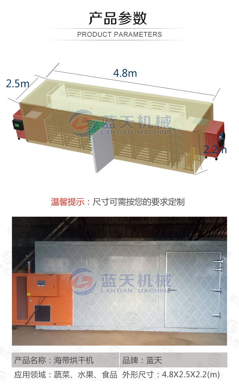 1、溫度—海帶的烘干一般要求比較低的溫度下進(jìn)行,以避免高溫影響產(chǎn)品烘干后的質(zhì)量。