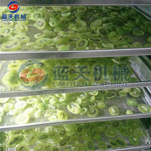 將糖煮好的獼猴桃果實撈出,瀝干糖液,放在竹篩網(wǎng)(或不銹鋼網(wǎng))上,送入烘房內(nèi)烘干。烘干時應(yīng)將前期溫度控制在50℃,待果實半干時,再將溫度提高到55~58℃,繼續(xù)干燥20小時左右即可。干燥好的果脯要求外部不粘手,捏起來有彈性。
