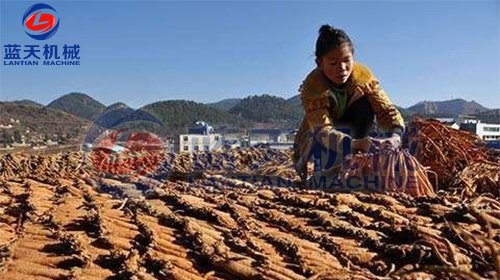 黨參曬至根條發(fā)軟,折彎不斷時(shí),趁熱在地方順勢旋轉(zhuǎn)揉搓3-5分鐘,使根條更柔軟,并脫除部分根毛、泥土、就地繼續(xù)晾曬。倒胚后,曬至根條溫?zé)?30-40度),然后上堆,覆蓋塑料膜繼續(xù)悶曬,提高根條溫度及柔軟程度。