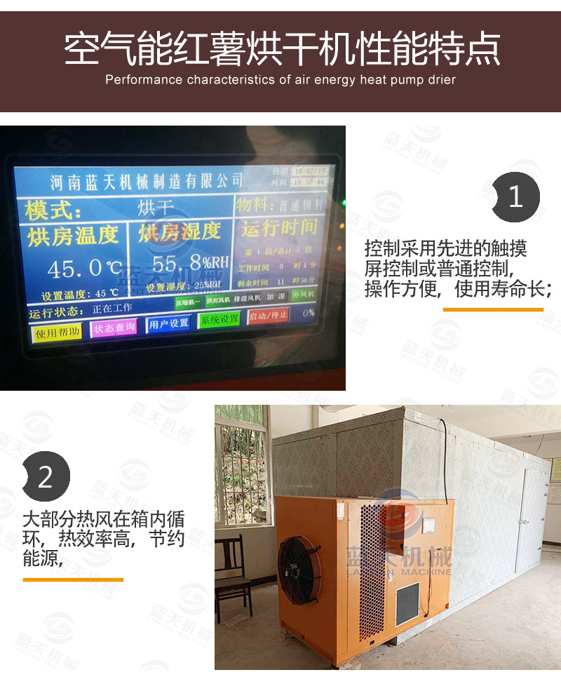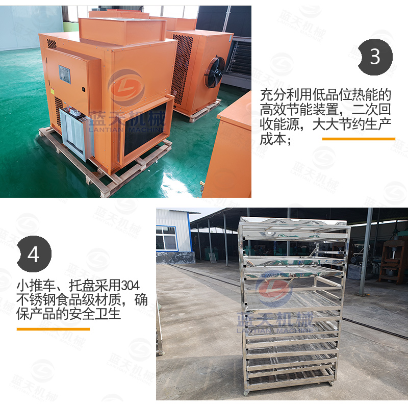 干燥烘干地瓜。干燥烘干地瓜有兩種辦法,一種是通過日曬的辦法,一般不下雨的情況下,在陽光下曬4-5天即可,要定時翻轉(zhuǎn)。另一種辦法是利用地瓜干烘干設(shè)備進(jìn)行烘干地瓜,這種辦法適合量大,且不受天氣影響。開啟地瓜干烘干設(shè)備。將已經(jīng)擺好托盤的地瓜推進(jìn)去地瓜干烘干機內(nèi),關(guān)閉房門。通過智能控制面板,設(shè)置好溫度和濕度,一般設(shè)置為四個階段,一階段設(shè)定45℃,定時2~3小時。二階段溫度設(shè)定50℃,定時3小時。三階段溫度設(shè)定60℃,定時3小時。四階段溫度設(shè)定70℃,定時3小時。一般用時12個小時即可。