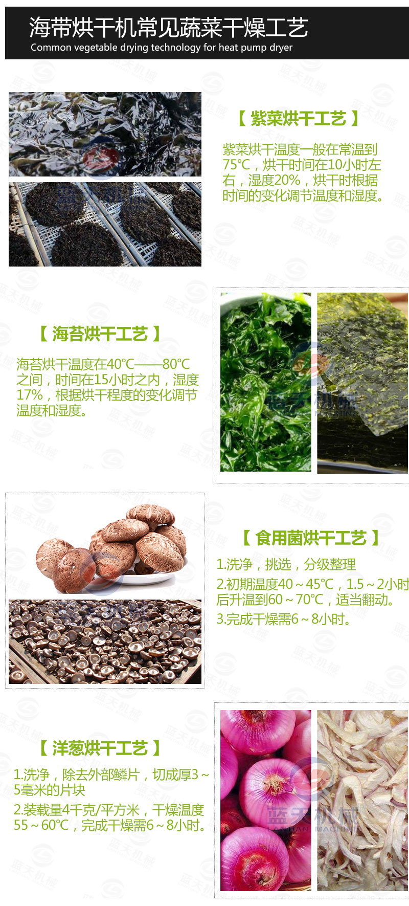 3、烘干時間—海帶烘干一般周期比較長,快速烘干一般都會破壞烘干質(zhì)量;