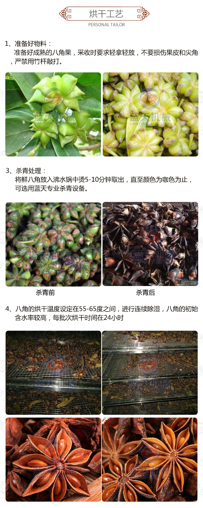 八角需要干燥脫水,老百姓們傳統(tǒng)的干燥就是看天氣,靠太陽曬的方式,或者燒柴的方式較為普遍,這兩種方式的主要問題在于,一,干燥時間長,一般在4天以上。二,所需干燥場地較大,干燥時間受天氣制約。第三,不節(jié)能環(huán)保。